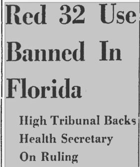 - Daytona Beach Morning Journal – Dec 15, 1958: Red 32 Use Banned in Florida