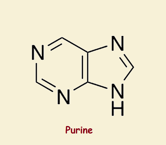 Was an attack on diet a valid call? Somewhat. Gout pain and swelling arises from needle-like crystal deposits. Chemically, these crystals are the hydrated sodium salt of uric acid. Now red meat is rich in purines (we’re not changing the subject). Compare the ring structures of purine and of uric acid. Very similar, no? They are traditional focal points in understanding gouty arthritis.